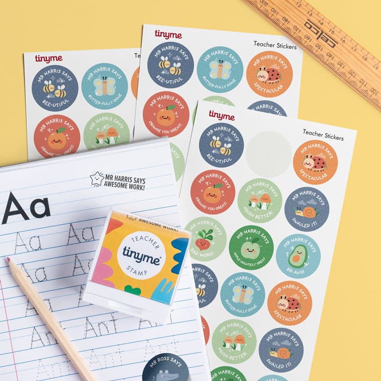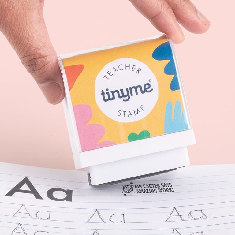Tinyme's personalised Teacher Stamp works best on everyday office and workbook paper. The ink may smudge on coated or shiny paper.