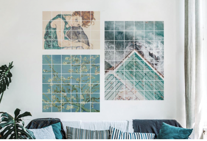 Creating modern, tiled artwork from one of your very own photos could not be simpler! First, simply choose your artwork's shape, then select the overall size of your artwork. You finish off the process by uploading that special photo and cropping it just right to ensure the gaps in between the sticker tiles will not obscure a certain detail in your artwork.
